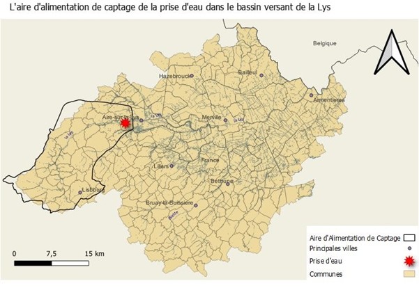 L’usine puise directement son eau dans la Lys, et son aire d’alimentation de captage couvre une superficie de 305 km², en amont de la prise d’eau et correspond à un des sites pilotes proposés au sein du projet.